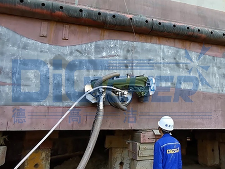 再看現(xiàn)在的修船基地,沒有高大的腳手架、沒有到處飛濺的漆渣、沒有四流的污水,沒有繁多的工人,船舶除漆除銹卻能高效快速的完成。原來是船塢請來的“王牌嘉賓”,改變了船舶除漆除銹的工況,提高了效率。