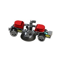 機(jī)器人采用四輪驅(qū)動,負(fù)載能力強(qiáng),可在在垂直面及天花板面任意行走;電機(jī)驅(qū)動,具有穩(wěn)定可靠的立面吸附措施;機(jī)器人前端的毛刷盤負(fù)責(zé)清理和回收模板表面的粉塵和殘渣。